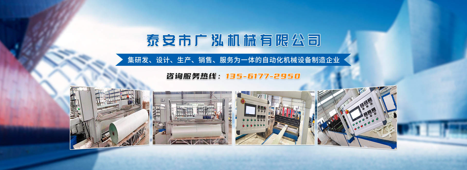 泰安市廣泓機械有限公司,是一家集研發、設計、生產、銷售、服務為一體的自動化機械設備制造企業。公司擁有一支由業內精英技術人士組成的研發隊伍,采用精湛生產工藝,致力為用戶提供自動化智能化的產品。經過多年來的發展及客戶的支持,公司現已研發了多種成熟設備推出市場,主要產品包含:玻纖布中心卷機外卷裝機、各類液壓式拉擠設備等產品,受到客戶的一致好評。公司不斷強化服務。堅持以質取勝、以誠取信的原則為廣大新老用戶提供更好、更滿意的產品。竭誠與新老客戶、各界朋友攜手合作,共創偉業!